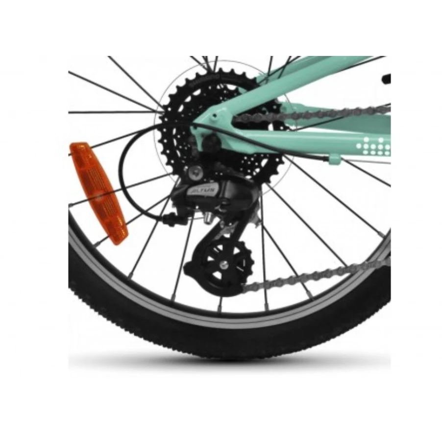Wiek dziecka: 5-8 lat Wzrost dziecka: 110-130 cm *Waga roweru: ~7,7 kg Rozmiar koła: 20“ **Wysokość siodełka: 59-67 cm *bez pedałów **wysokość mierzona od ziemi RAMA: Niska, ułatwiająca wsiadanie i zsiadanie, wykonana z wysokiej jakości lekkiego stopu aluminium z cieniowanymi rurkami. WIDELEC: 20” superlekki, wykonany z aluminium 6061, rura sterowa 1” WSPORNIK KIEROWNICY: Aluminiowy, regulowana wysokość wspornika, zapewniającą idealną pozycję do jazdy. KIEROWNICA: Lekka, wykonana z podwójnie cieniowanego aluminium 6061 CHWYTY: Ergonomiczne, z nietoksycznego materiału HAMULCE: Aluminiowe typu V-brake, ergonomiczne chwyty dostosowane do małych dłoni PRZERZUTKA: Shimano RD-M310-L, ALTUS, 8-SPEED KASETA: Shimano CS-HG31, 8-SPEED MANETKI: Shimano SL-RS45-8R, TOURNEY, 8-SPEED REVO SHIFTER, łatwa obsługa KORBA: Aluminiowa, osłona łańcucha ŁAŃCUCH: 8S, HOLLOW TYPE SIODŁO: Wygodne i lekkie dostosowane do wieku i wzrostu dziecka WSPORNIK SIODŁA: Aluminiowy, 25.4 x 220mm KOŁA: 20” aluminiowe ultralight, 24 szprychy OPONY: 20” x 1,5” o niskich oporach toczenia ułatwiające jazdę PEDAŁY: Platformowe z wysokogatunkowego tworzywa Superlekka rama Wykonana z wysokiej jakości aluminium, z potrójnie cieniowanymi rurkami jest nie tylko superlekka, ale także wytrzymała i trwała, co gwarantuje długotrwałe użytkowanie. Opony o lekkim toczeniu Opony, które bardzo lekko się toczą, sprawiają, że rowerek łatwo nabiera prędkości i jednocześnie redukują opory toczenia podczas jazdy. To doskonałe rozwiązanie dla dzieci, które uczą się jeździć ponieważ zapewniają płynną jazdę bez większego wysiłku. Bardzo lekkie wygodne siodełko Wygodne siodełko zwiększa komfort podczas jazdy, co jest kluczowe dla zachęcenia dzieci do regularnej aktywności fizycznej. Ergonomiczny design siodełka zapewnia odpowiednie wsparcie dla młodego rowerzysty. Hamulce bezpieczne dla dzieci Hamulce typu V-brake na przednie i tylne koło wyposażone w ergonomiczne i regulowane dźwignie hamulca to rozwiązanie, które zapewnia bezpieczeństwo oraz łatwość obsługi nawet najmłodszym użytkownikom. Wygodna pozycja Regulowany mostek pozwala na optymalne dostosowanie pozycji dziecka za kierownicą, zapewnia komfort jazdy i pełną kontrolę nad rowerkiem Osprzęt Shimano to gwarancja wysokiej jakości i trwałości Lekko działająca manetka w gripie sprawia, że zmiana biegów będzie łatwa i płynna dla dziecka. To ważne, aby dziecko mogło skupić się na jeździe i nie martwić się o trudności z obsługą jednośladu. Rama przyjazna dla dodatkowych akcesoriów Rama umożliwia montaż dodatkowego wyposażenia, takiego jak podpórka i błotniki.