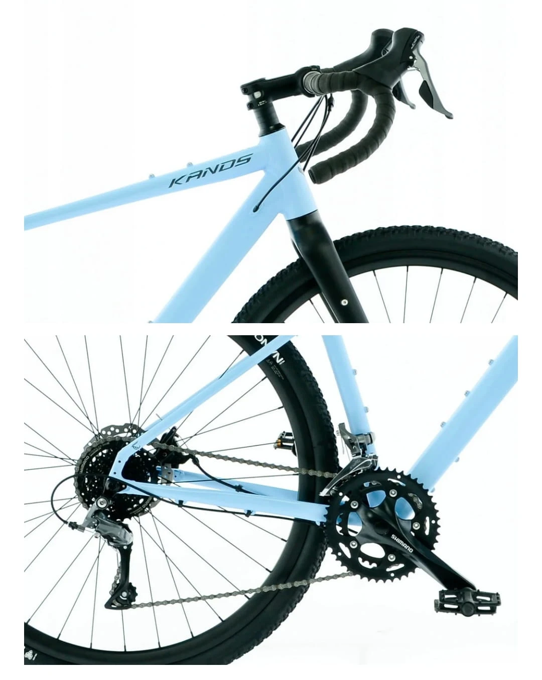 Rama: KANDS HYDROFORMING AL6061 TECHNOLOGY Widelec: KANDS ALUMINIOWY SZTYWNY 12×100 NAPĘD: Przełożenia: 16 Przerzutka tył: SHIMANO CLARIS RDR2000 Przerzutka przód: SHIMANO CLARIS FDR2000 Manetki: SHIMANO CLARIS ASTR2000 Mechanizm korbowy: SHIMANO CLARIS FCRS200, 2-RZ, 46X34T Łańcuch: SHIMANO HG-40 Kaseta: SHIMANO 8-RZ CSHG31 (11-34) Suport: Maszynowy Obręcze: MACH1 GRAVEL19 ALUMINIOWE Piasta przód: SHIMANO ALUMINIOWA E-THRU 12X100, CENETERLOCK Piasta tył : SHIMANO ALUMINIOWA KASETOWA E-THRU 12X142, CENETERLOCK Opony: WTB NANO COMP, 40-622 KOMPONENTY: Hamulece: RIDEREVER MCX-2 TARCZOWY MECHANICZNY 2-TŁOCZKOWY FLAT MOUNT Stery: ALUMINIOWE MASZYNOWE TAPERED Kierownica: GRAVELOWA ALUMINIOWA S-400MM, M,L-420MM Wspornik kierownicy: ALUMINIOWY S-31,8X80MM, M,L-31,8X90MM Wspornik siodła: KALLOY UNO ALUMINIOWY 27,2MM Siodło: DDK GRAVELOWE VM FIT Pedały: PLATFORMOWE, TWORZYWO ŁOŻYSKOWANE Z ODBLASKIEM Chwyty:OWIJKA ANTYPOŚLIZGOWA